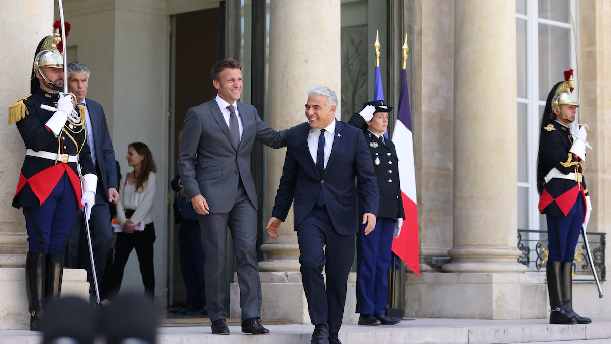 وأضاف ماكرون للصحافيين، خلال مؤتمر صحافي مشترك مع رئيس الوزراء الإسرائيلي يائير لبيد، الذي بدأ زيارة لباريس، الثلاثاء، أن شعب إسرائيل "محظوظ بوجود لبيد رئيساً جديداً للوزراء".