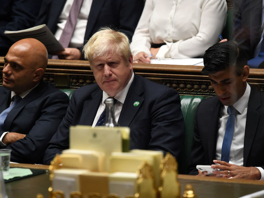 يعاني جونسون بالأساس تداعيات فضيحة الحفلات التي أقيمت في مقر الحكومة خلال مرحلة الإغلاق التام إبان الجائحة وقد أفلت قبل أسابيع من تصويت على سحب الثقة قرره نواب حزبه المحافظ.