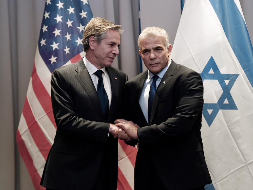 أكد وزير الخارجية الأميركي أنتوني بلينكن، الأربعاء، لرئيس الوزراء الإسرائيلي يائير لبيد، "التزام الولايات المتحدة الثابت بأمن إسرائيل ومواجهة التهديدات المشتركة، بما في ذلك التهديد الإيراني"، مشيراً إلى أن الرئيس جو بايدن يتطلع إلى الاحتفال بالشراكة مع إسرائيل خلال زيارته المقبلة المقررة في يوليو الجاري.