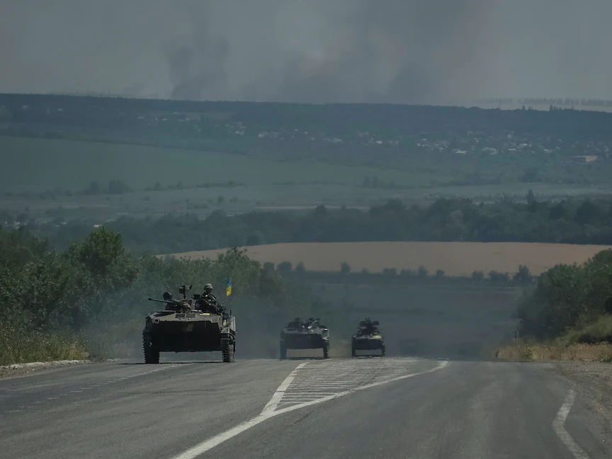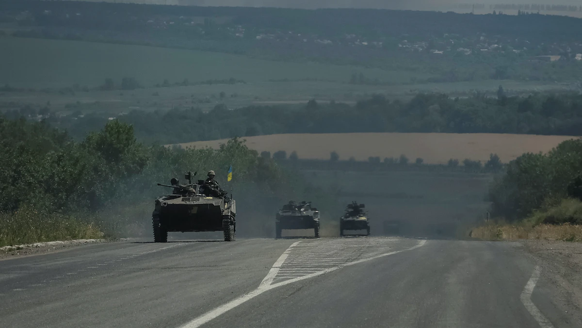 أفراد من الجيش الأوكراني في مركبة مشاة قتالية من طراز BMP-1 بمنطقة دونيتسك- أوكرانيا في 7 يوليو 2022. - REUTERS
