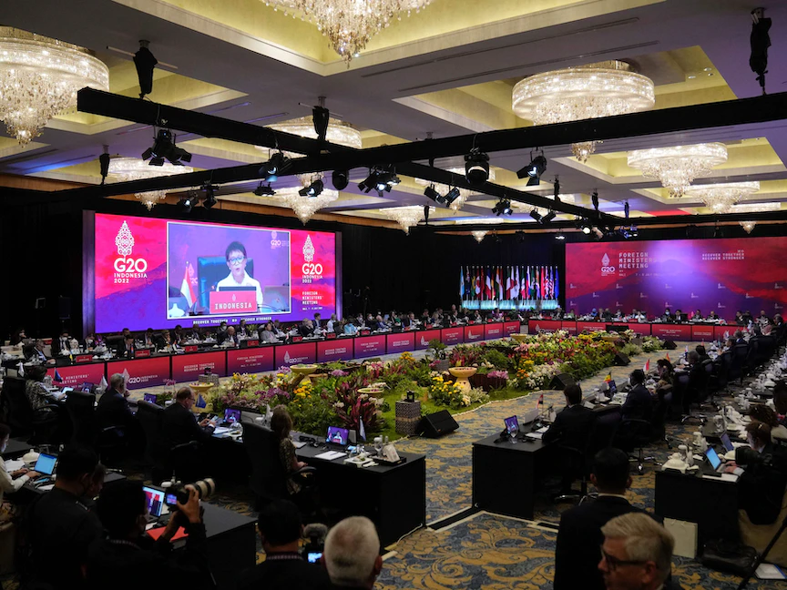 اختتم وزراء مجموعة العشرين الجمعة، أعمال الاجتماع الوزاري الذي عُقد في مدينة بالي الإندونيسية دون بيان موحد، وسط انقسام للمواقف بشأن إدانة الغزو الروسي لأوكرانيا، فيما اعتبرت موسكو أن الدول الغربية "فشلت في فرض مقاطعة" على روسيا خلال اجتماعات المجموعة.
