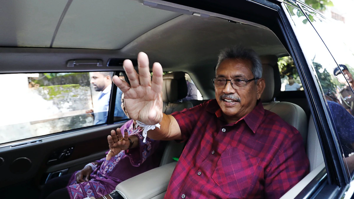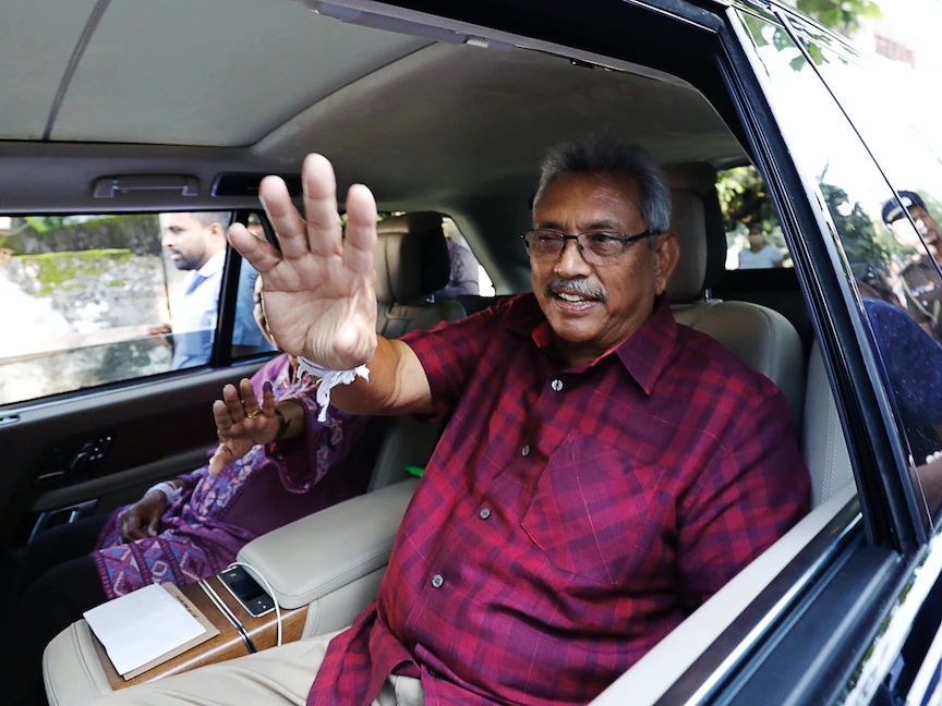 الرئيس السريلانكي جوتابايا راجاباكسا بعد الإدلاء بصوته في الانتخابات الرئاسية في كولمبو. - REUTERS