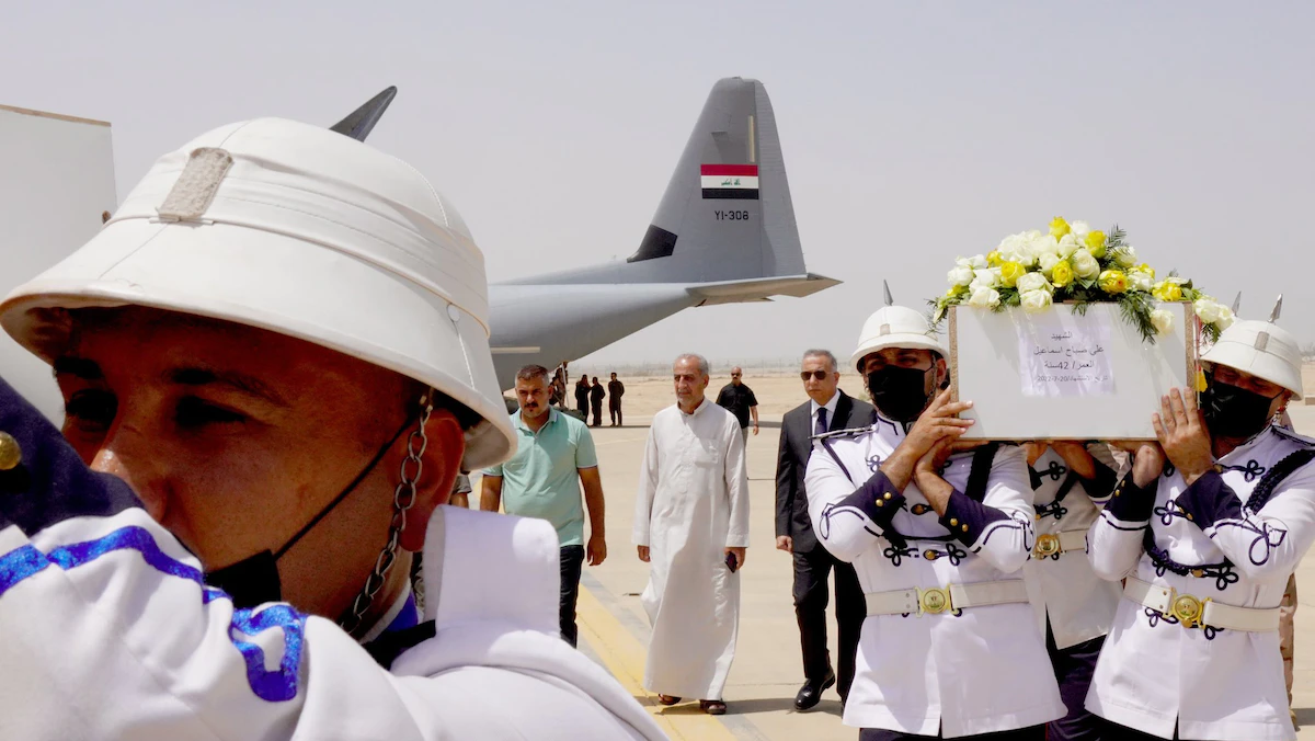 واستقبل رئيس مجلس الوزراء مصطفى الكاظمي جثامين الضحايا، وتقدّم مراسم التشييع الرسمي التي انطلقت من مطار بغداد الدولي، بحضور عدد من القيادات الأمنية والمسؤولين، بحسب بيان للمكتب الإعلامي لرئيس مجلس الوزراء.