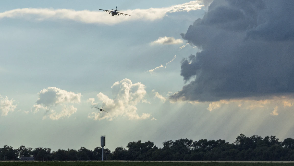 مقاتلتان أوكرانيتان من طراز Su-25 تُحلّقان على ارتفاع منخفض وسط هجوم روسي في منطقة دونيتسك بأوكرانيا. 24 يونيو 2022. - REUTERS