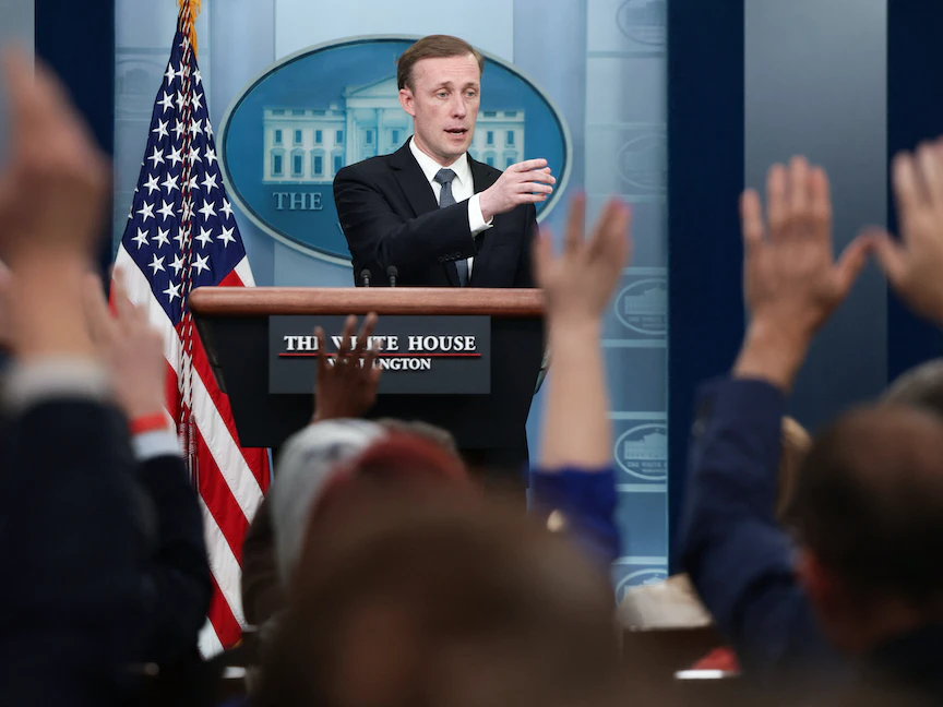 مستشار الأمن القومي الأميركي جيك سوليفان خلال مؤتمر صحافي في البيت الأبيض- 18 مايو 2022 - REUTERS