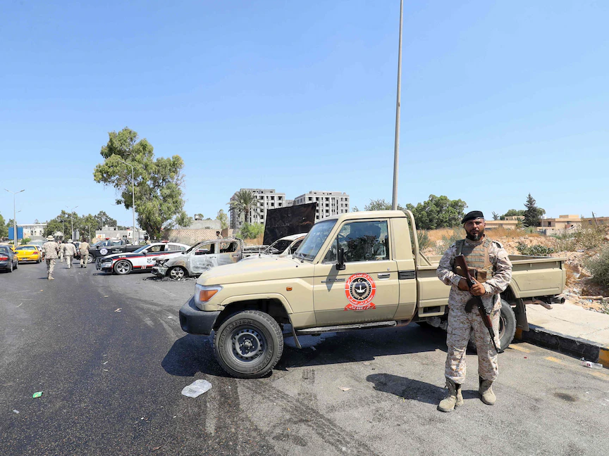 وأفاد الناطق باسم الحكومة المقالة من البرلمان محمد حمودة بأن "جهاز الردع أعلن التزامه بوقف الاشتباك"، وذلك بعد "جهود متواصلة من رئيس المجلس الرئاسي ورئيس مجلس الوزراء" عبد الحميد الدبيبة.