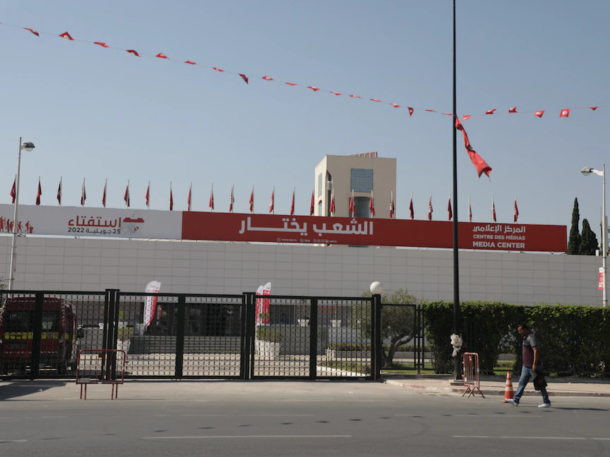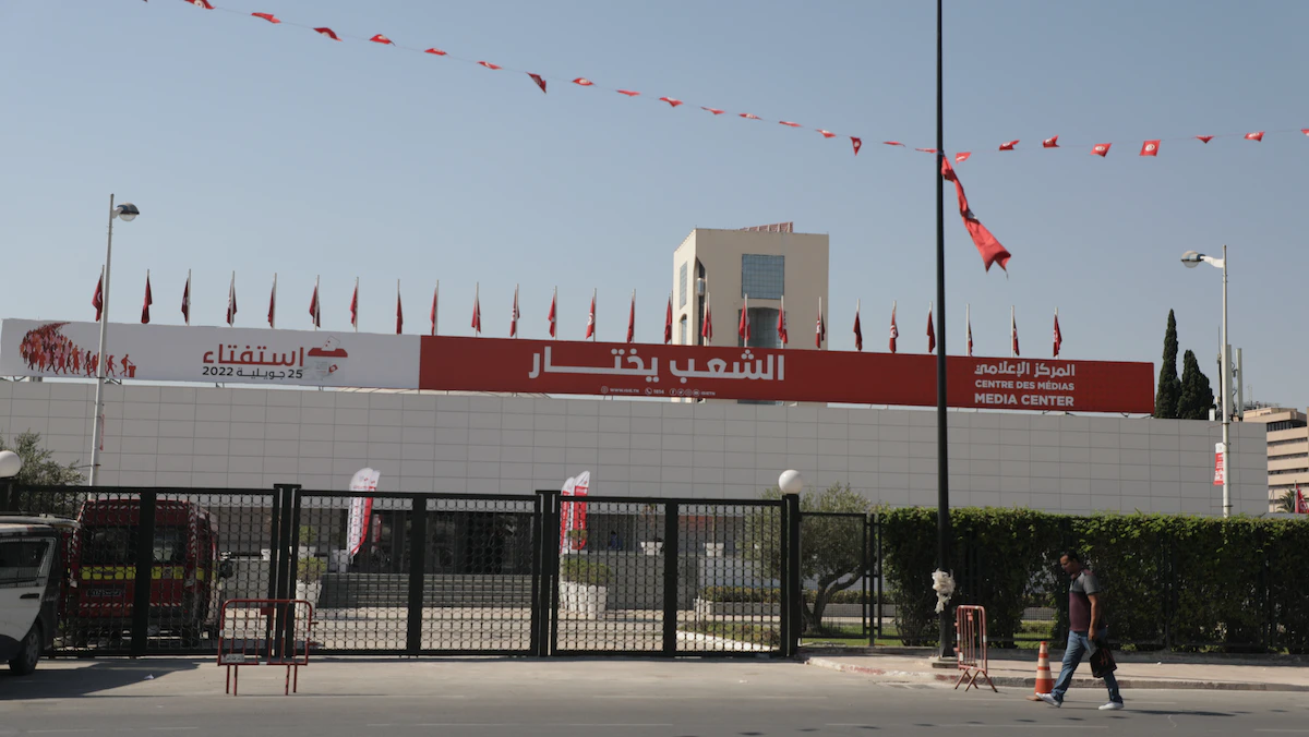 مقر مغلق لفرز الأصوات في العاصمة التونسية تونس، قبل انطلاق عملية الاستفتاء على الدستور الجديد. 24 يوليو 2022. - الشرق