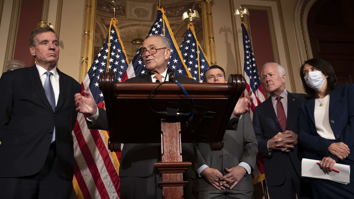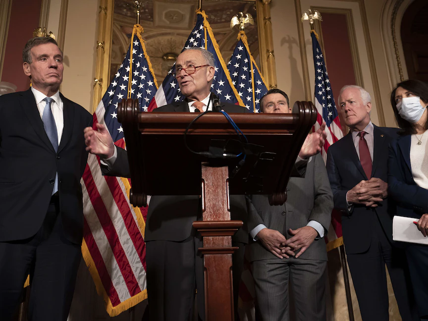 ولفت شومر إلى أنه استمر العمل على هذا القانون على مدى أكثر من 3 سنوات، إذ بدأ مناقشته لأول مرة في 2019 مع السيناتور الجمهوري تود يونج، عندما كانا يتدربان معاً في ناد رياضي خاص بمجلس الشيوخ.