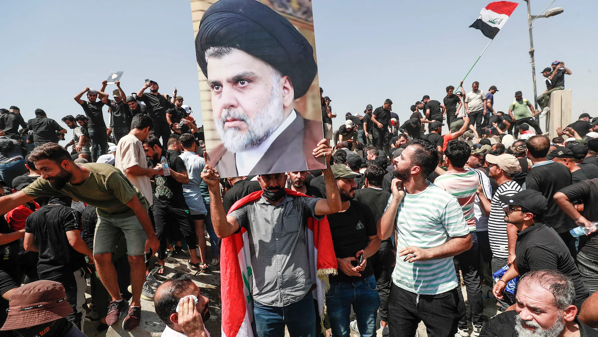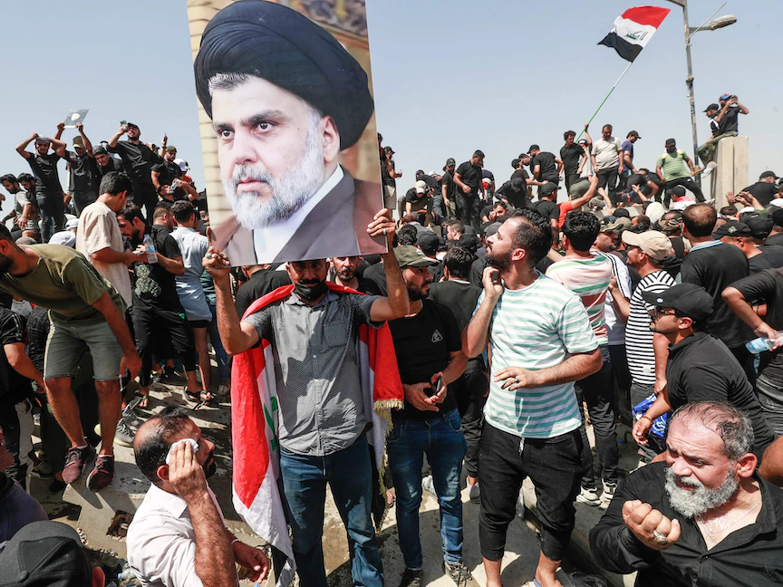 وعبر مئات المتظاهرين، الحواجز الخرسانية التي أقامتها الشرطة العراقية على جسر الجمهورية في بغداد، صباح السبت، باتجاه المنطقة الخضراء، في إطار المظاهرات التي دعا لها زعيم التيار مقتدى الصدر، احتجاجاً على استمرار "الإطار التنسيقي" في ترشيح محمد شياع السوداني لرئاسة الوزراء.