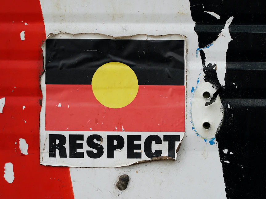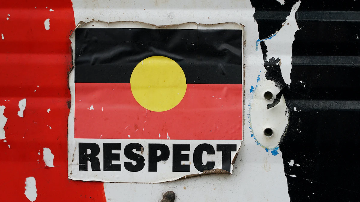 كلمة "الاحترام" على ملصق لعلم السكان الأصليين الأسترالي في العاصمة كانبرا - REUTERS
