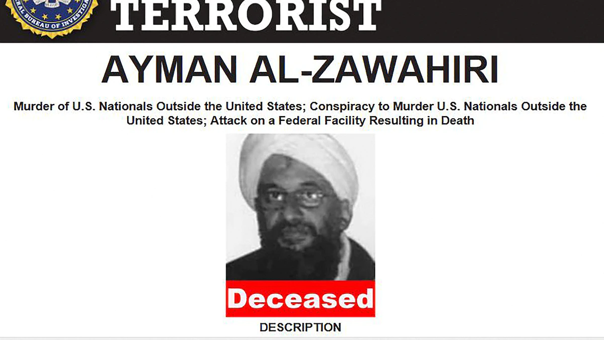 قتلت غارة أميركية بطائرة مسيرة، زعيم تنظيم "القاعدة" أيمن الظواهري في أفغانستان، في أكبر ضربة للتنظيم المتشدد منذ قتل مؤسسه أسامة بن لادن في عام 2011.