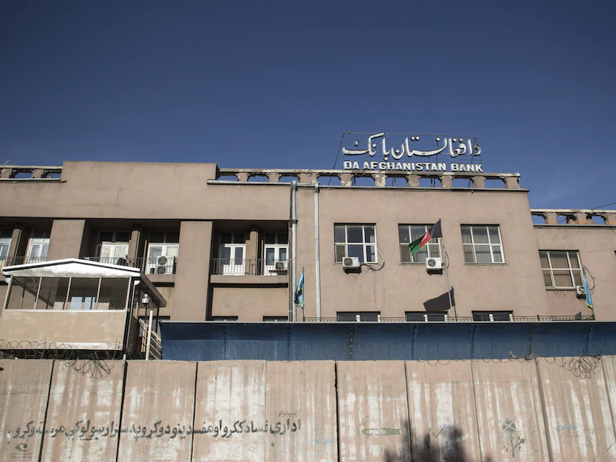 وفي إطار الانسحاب، جمّدت الولايات المتحدة نحو 9.5 مليار دولار من الأصول المملوكة للمصرف المركزي الأفغاني، غالبيتها في حسابات بمجلس الاحتياطي الفيدرالي في نيويورك، ومؤسسات مالية بالولايات المتحدة.