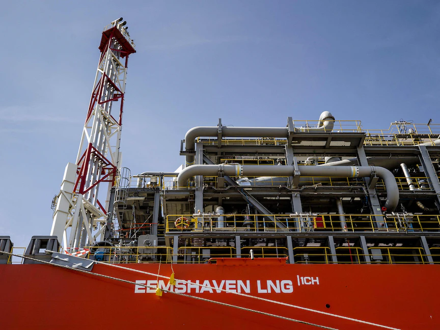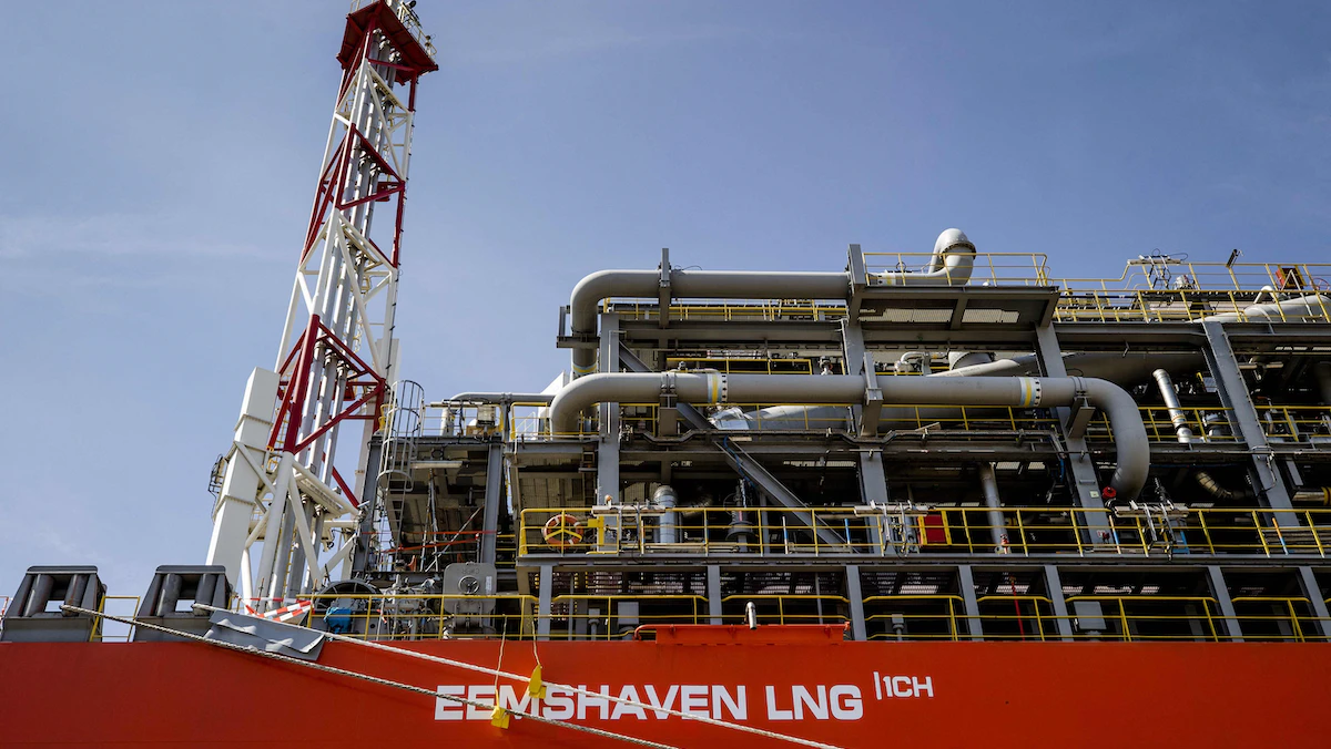 جانب من مصنع الغاز الطبيعي المسال العائم في ميناء روتردام الهولندي- 3 أغسطس 2022 - AFP