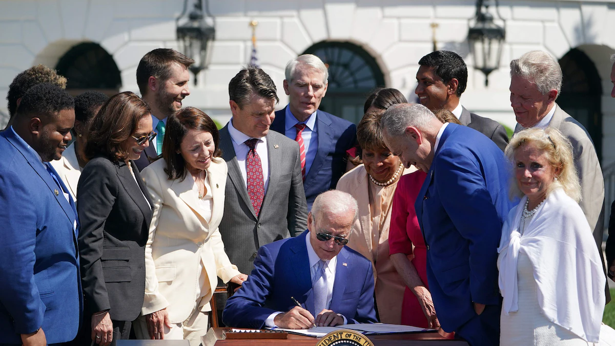 ووقع بايدن على قانون الرقائق بحضور رؤساء تنفيذيين لشركات بارزة، بما في ذلك "مايكرون" و"إنتل" و"لوكهيد مارتن" و"إتش بي"، إضافة إلى مسؤولين حكوميين، وممثلين عن قطاع السيارات، وقادة نقابيين.