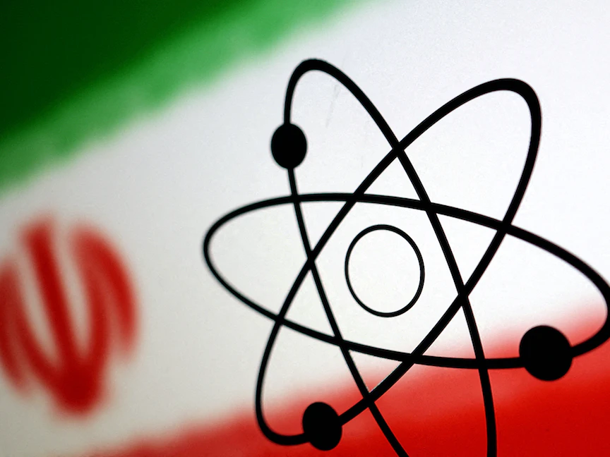 صورة تعبيرية للعلم الإيراني ورمز التفاعلات النووية  - REUTERS