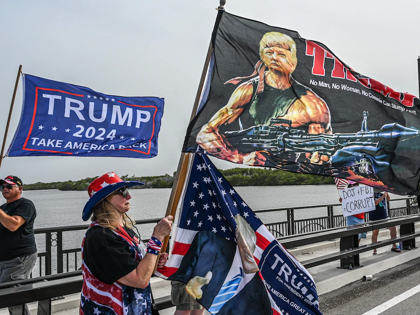 أنصار الرئيس الأميركي السابق دونالد ترمب يتجمعون بالقرب من مقر إقامته في فلوريدا. 9 أغسطس 2022 - AFP