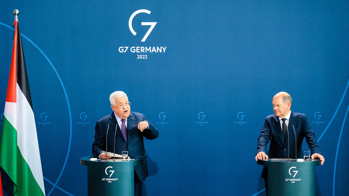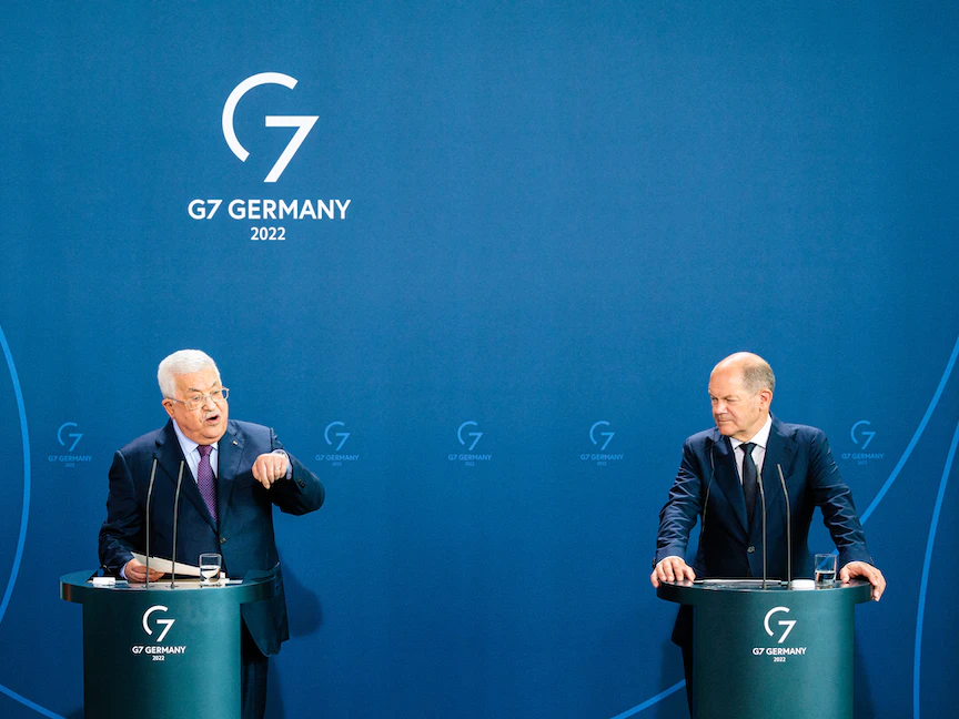 أثار وصف إسرائيل بـ"دولة فصل عنصري" (أبارتايد)، والمطالبة بمنح فلسطين العضوية الكاملة في الأمم المتحدة تبايناً في المواقف بين المستشار الألماني أولاف شولتز، والرئيس الفلسطيني محمود عباس الذي يجري، الثلاثاء، زيارة رسمية إلى ألمانيا.