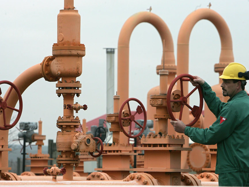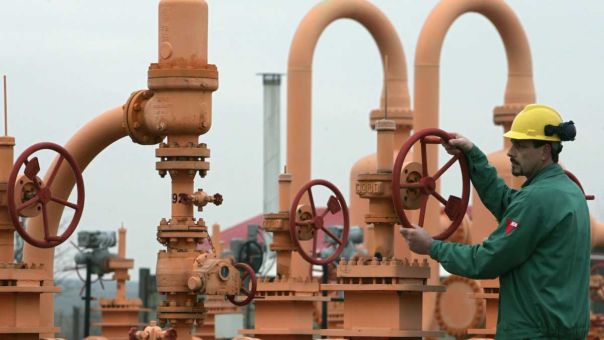 عامل يتحكم في صمام الغاز في خطوط الأنابيب التابعة لمجموعة "أم أو إل" المجرية - 17 يناير 2009. - REUTERS