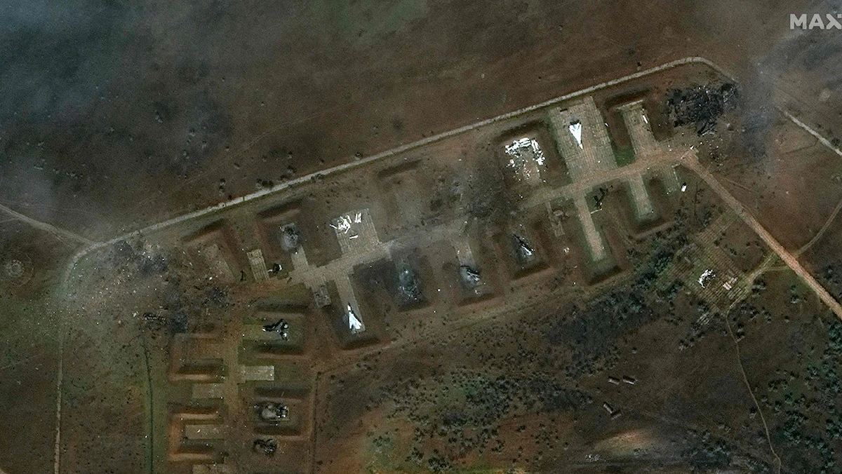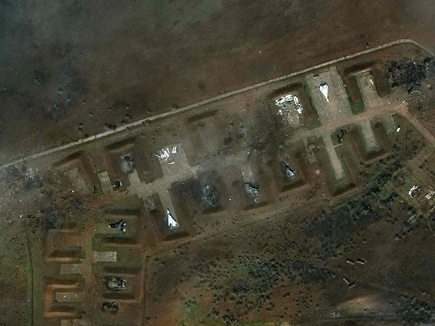 كما تضررت بشدة قاعدة ساكي الجوية في جنوب غربي شبه جزيرة القرم، والواقعة بالقرب من مقر الأسطول في سيفاستوبول، الأسبوع الماضي بسبب سلسلة من الانفجارات التي دمرت ثماني طائرات حربية، وفقاً لصور التقطتها أقمار اصطناعية.