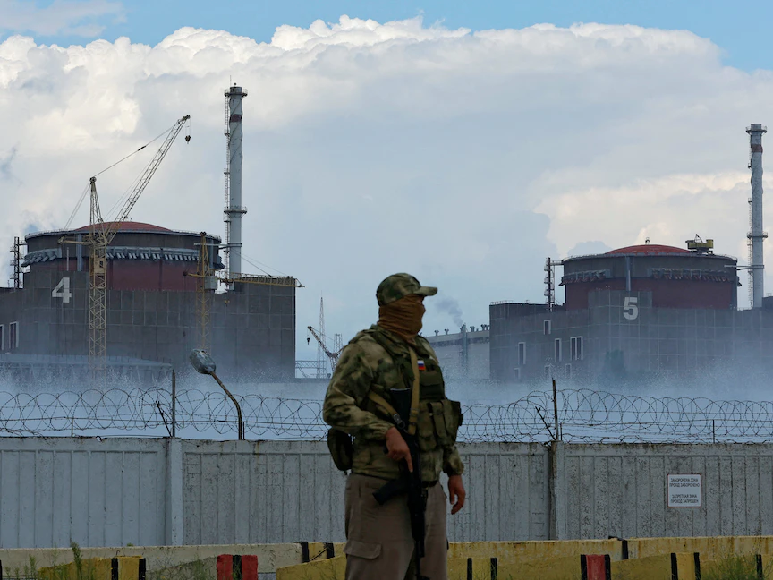 جندي روسي أمام محطة زابوروجيا للطاقة النووية جنوب شرقي أوكرانيا. 4 أغسطس 2022 - REUTERS