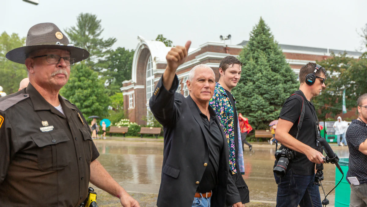 نائب الرئيس الأميركي السابق مايك بنس خلال زيارته معرضاً في ولاية أيوا - 19 أغسطس 2022 - REUTERS