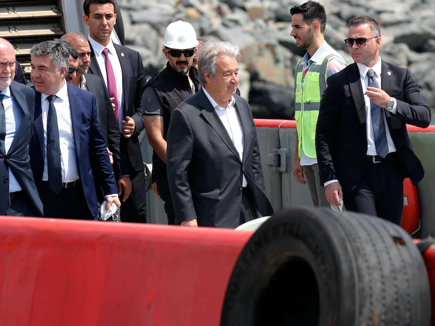 الأمين العام لمنظمة الأمم المتحدة  أنطونيو جوتيريش يتفقد سفينة محملة بالحبوب الأوكرانية في إسطنبول- 20 أغسطس 2022 - REUTERS