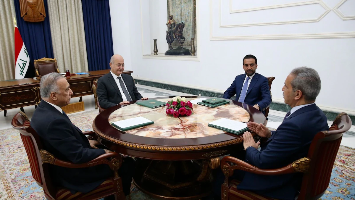 واستضاف الرئيس العراقي برهم صالح، الأربعاء، اجتماعاً ضم رئيس مجلس الوزراء مصطفى الكاظمي، ورئيس مجلس النواب محمد الحلبوسي، ورئيس مجلس القضاء الأعلى فائق زيدان، لبحث التطورات الأخيرة في العراق، والتداعيات المترتبة عليها.