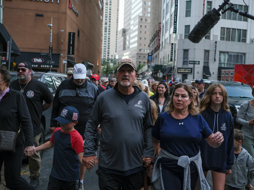 عائلات ضحايا 11 سبتمبر خلال إحياء الذكرى العشرين لهجمات 11 سبتمبر 2001 في مدينة نيويورك، الولايات المتحدة، 11 سبتمبر 2021. - REUTERS