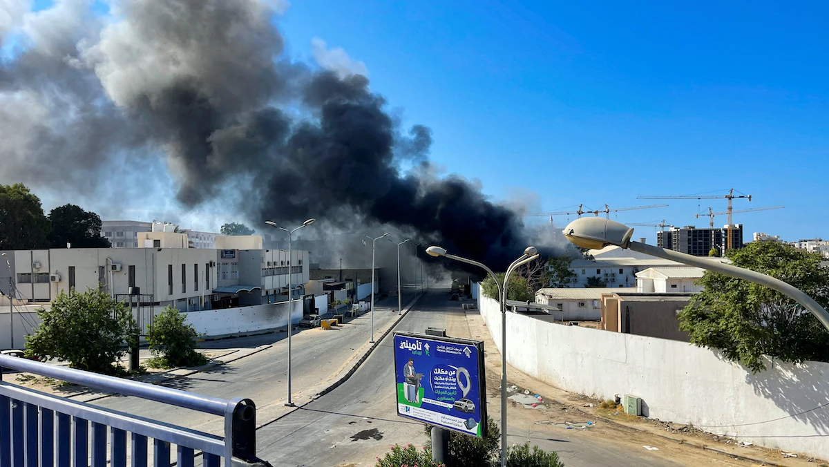 سحب الدخان تتصاعد في العاصمة الليبية طرابلس جراء الاشتباكات المسلحة، 27 أغسطس 2022 - REUTERS