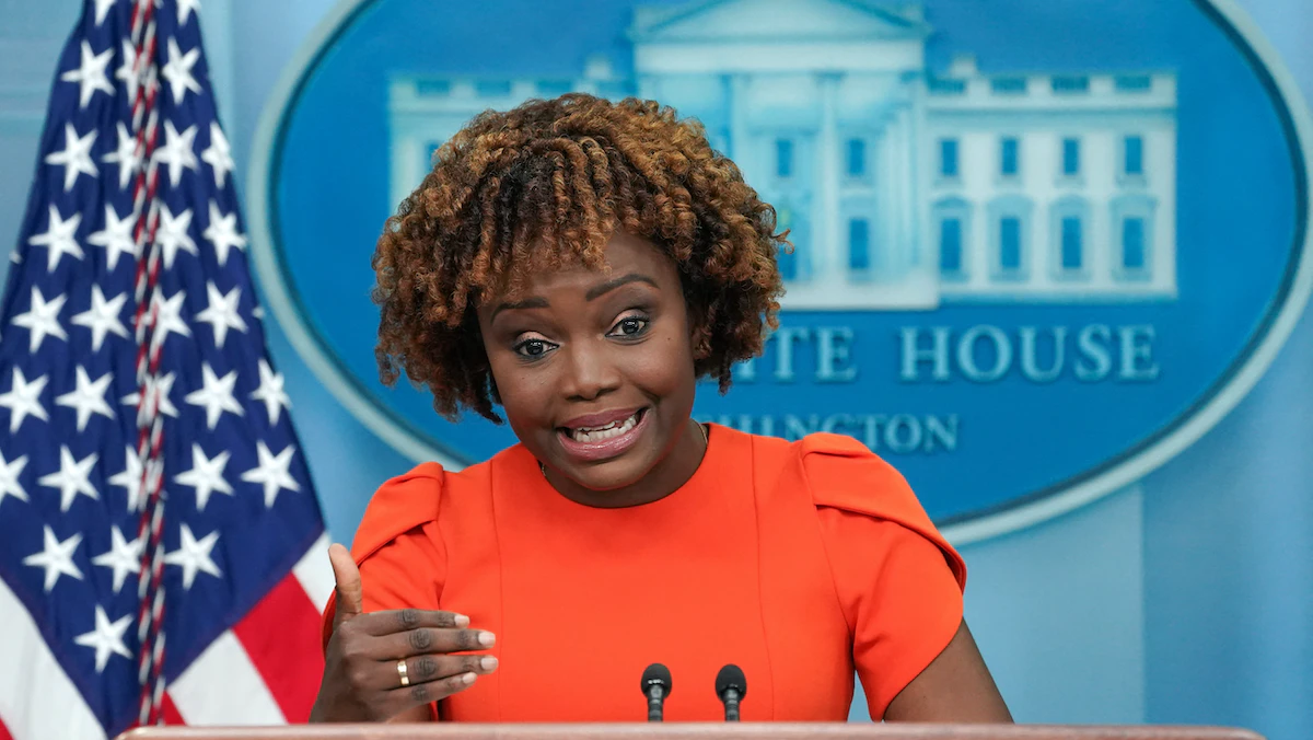 المتحدثة باسم البيت الأبيض كارين جان بيير خلال مؤتمر صحافي في واشنطن - REUTERS