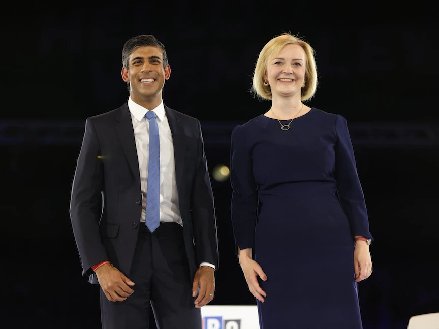 واعتمد سوناك لهجة أكثر تصالحية حيال ترَس في مناظرة، الأربعاء، التي جرت أمام الآلاف من أعضاء حزب المحافظين المجتمعين في ملعب ويمبلي في لندن.