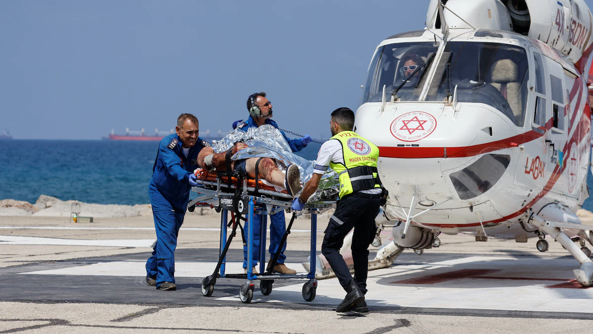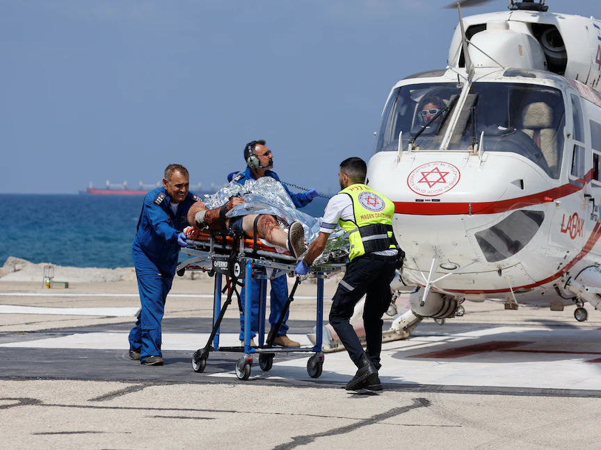 إنزال مصاب إسرائيلي من طائرة هليكوبتر عند وصوله إلى مستشفى حيفا بعد هجوم إطلاق نار في غور الأردن بالضفة الغربية - 4 سبتمبر 2022 - REUTERS
