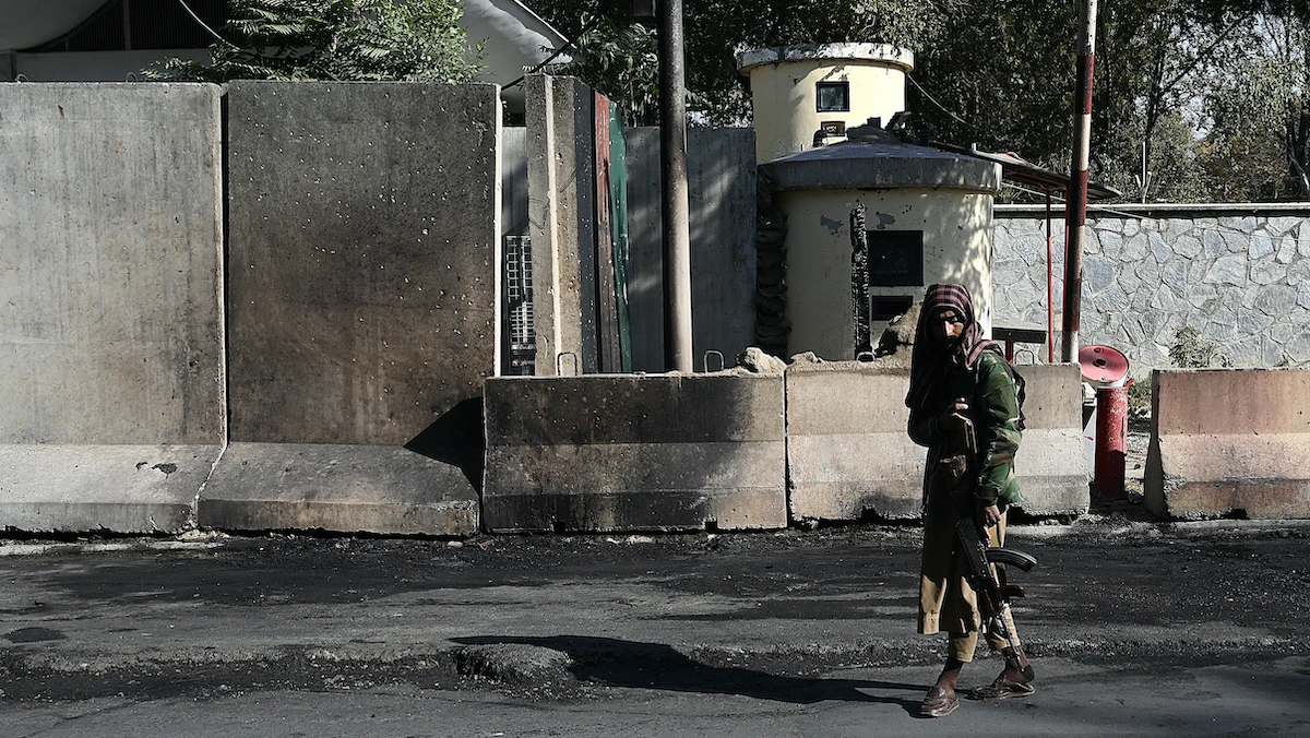 مقاتل من طالبان يحرس مستشفى سردار محمد داود خان العسكري في كابول بعد يوم من هجوم لـ"داعش" على المستشفى، 3 نوفمبر 2021 - AFP