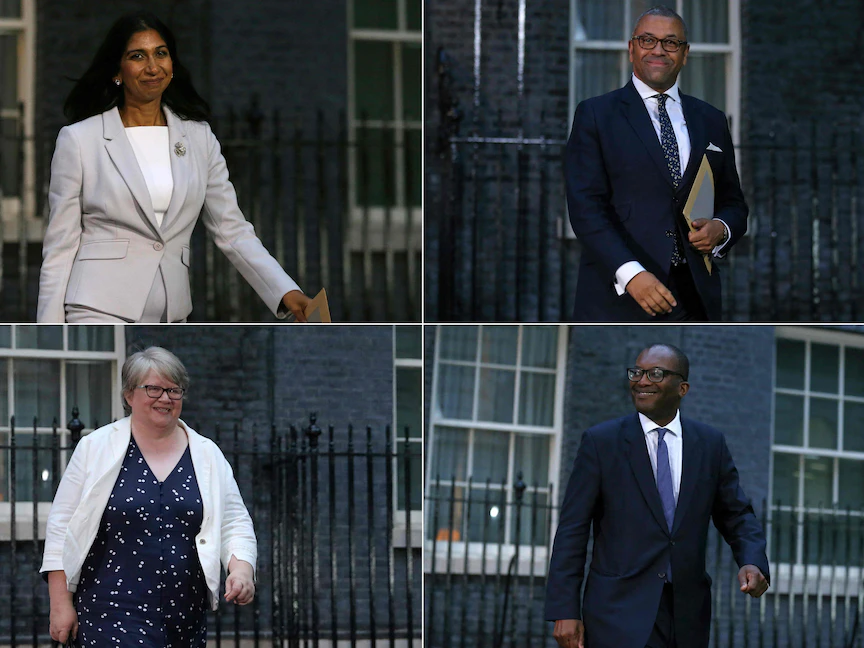 كما شملت التعيينات الجديدة ترقية جيمس كليفرلي من وزير للتعليم إلى منصب وزير الخارجية. كذلك، ترقت سويلا بريفرمان التي نافست ترَس على قيادة حزب المحافظين، إلى منصب وزيرة الداخلية من منصبها السابق كمدعية عامة.