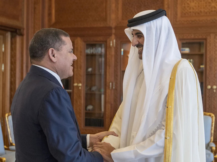 بحث أمير قطر الشيخ تميم بن حمد آل ثاني في الدوحة مع رئيس الحكومة الليبية المقالة من البرلمان، عبد الحميد الدبيبة، الخميس، ضرورة إجراء الانتخابات في ليبيا، بينما يتجه رئيس البرلمان الليبي عقيلة صالح إلى قطر لـ"مناقشة القضايا المتعلقة بالعملية الانتخابية"، بحسب ما ذكره مصدر مقرب من صالح لـ"الشرق".