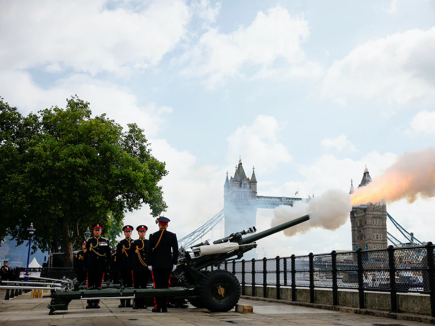 وقال قصر باكنجهام، الجمعة، إنه سيتم إطلاق أعيرة نارية لتكريم الملكة الراحلة في الساعة 12:00 بتوقيت جرينتش في متنزه هايد بارك بلندن، بواقع طلقة واحدة لكل عام من حياة الملكة.