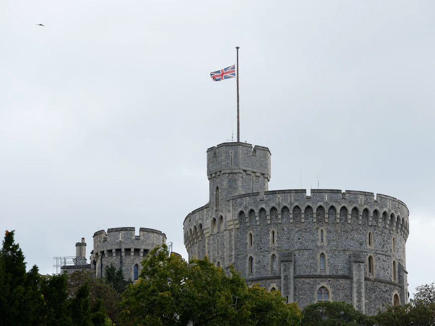 علم بريطانيا منكس فوق قلعة ويندسور بعد وفاة الملكة إليزابيث-9 سبتمبر 2022 - REUTERS
