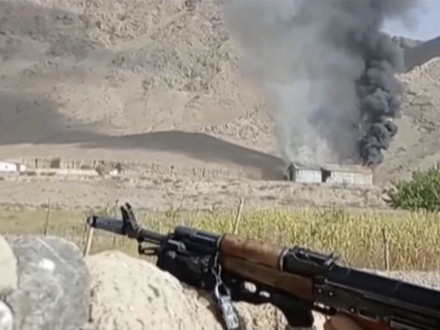 صورة نشرها حرس الحدود القرغيزي، مأخوذة من فيديو، تظهر المواجهات المسلحة مع طاجيكستان في مدينة باتكين على الحدود بين البلدين – 16 سبتمبر 2022 - REUTERS