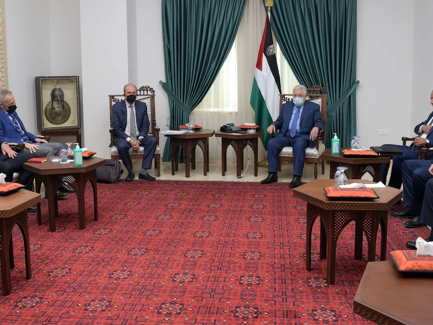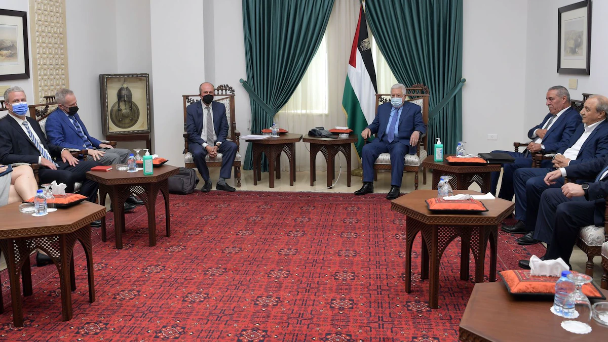 الرئيس الفلسطيني محمود عباس يستقبل نائب مساعد وزير الخارجية الأميركي للشؤون الإسرائيلية والفلسطينية هادي عمرو في رام الله. 17 مايو 2021 - Getty Images