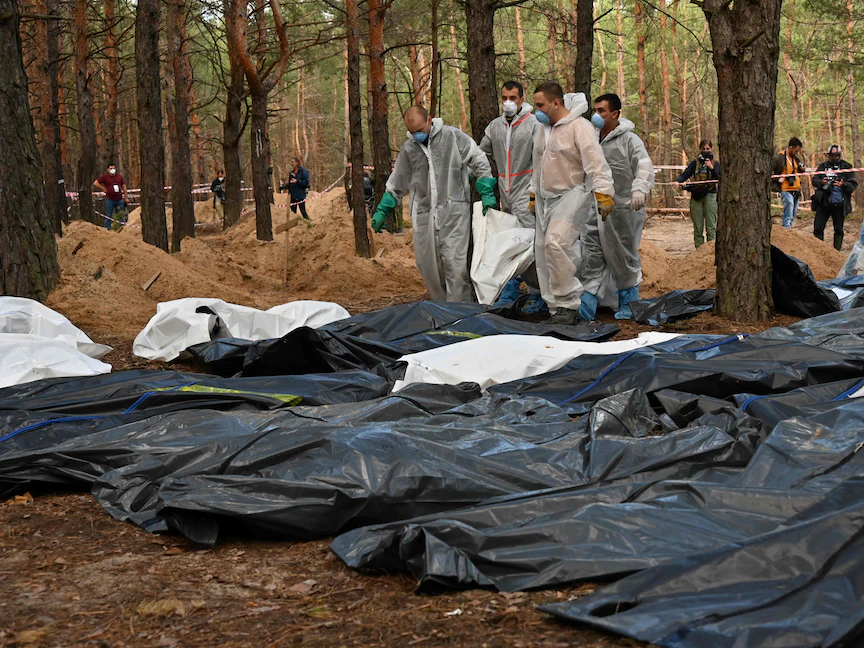 مقبرة جماعية بمدينة إيزيوم في أوكرانيا، 19 سبتمبر 2022. - AFP