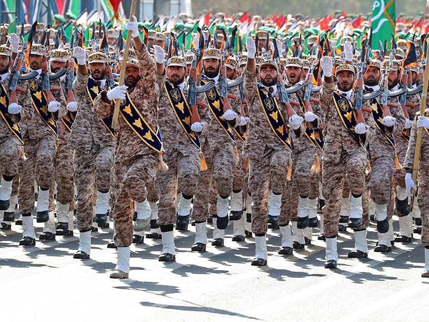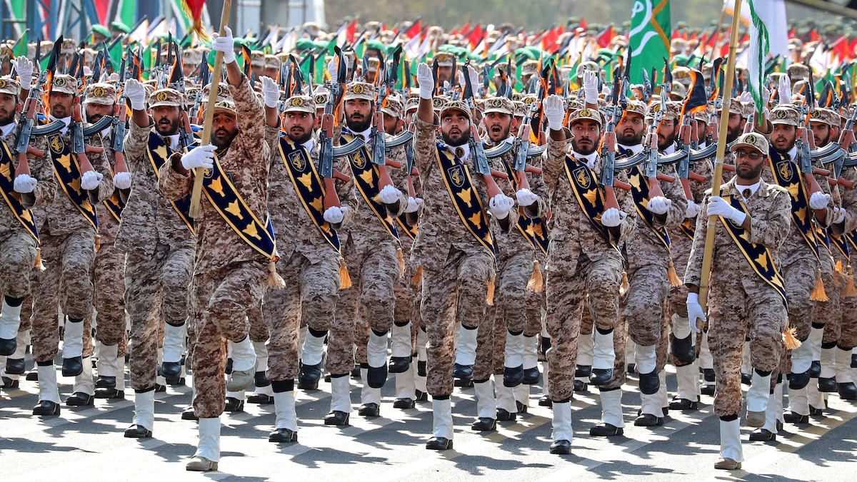 جنود إيرانيون في مسيرة خلال عرض عسكري في العاصمة طهران. 22 سبتمبر 2022. - AFP