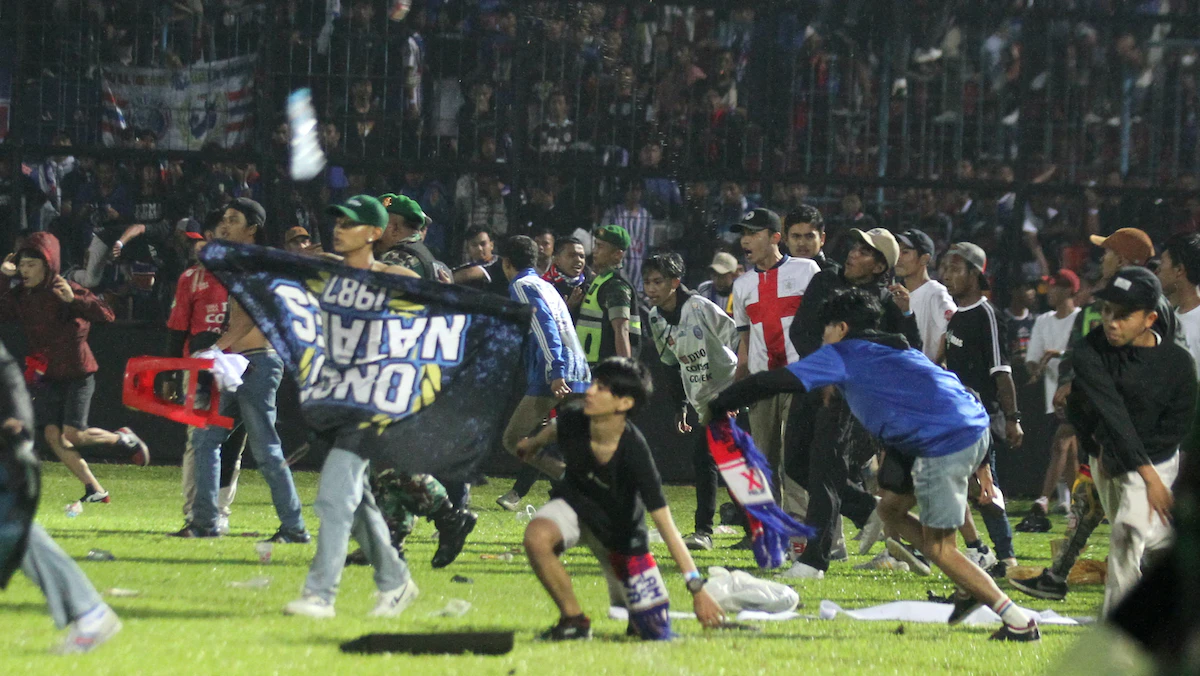 وتدافع المشجعون بذعر أثناء محاولتهم الهروب من الاستاد الممتلئ بأكثر من سعته في مالانج في جاوا الشرقية، السبت، بعدما أطلقت الشرطة الغاز المسيل للدموع لتفريق المشجعين بعد اقتحام جماهير الفريق صاحب الأرض الخاسر الملعب بعد مباراة محلية.