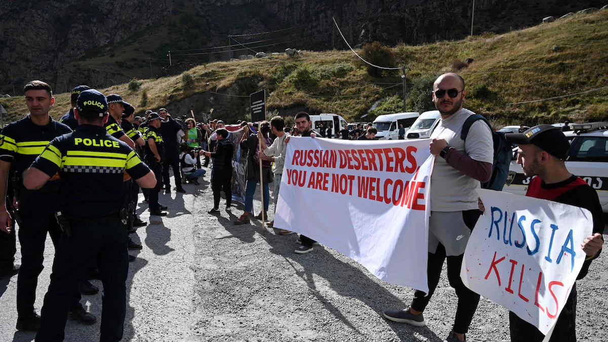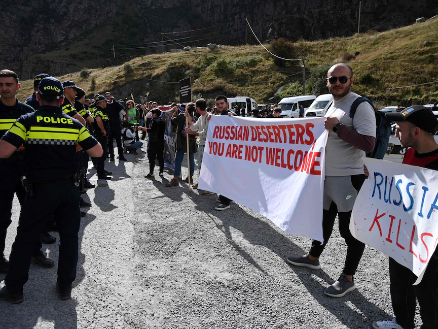 ورداً على تدفق اللاجئين الروس إلى جورجيا، ذهبت مجموعة من المحتجين بقيادة السياسية المعارضة إلين خوشتاريا، الأسبوع الماضي، من تبليسي إلى الحدود في جبال القوقاز للتظاهر ضد استقبال الروس الفارين.