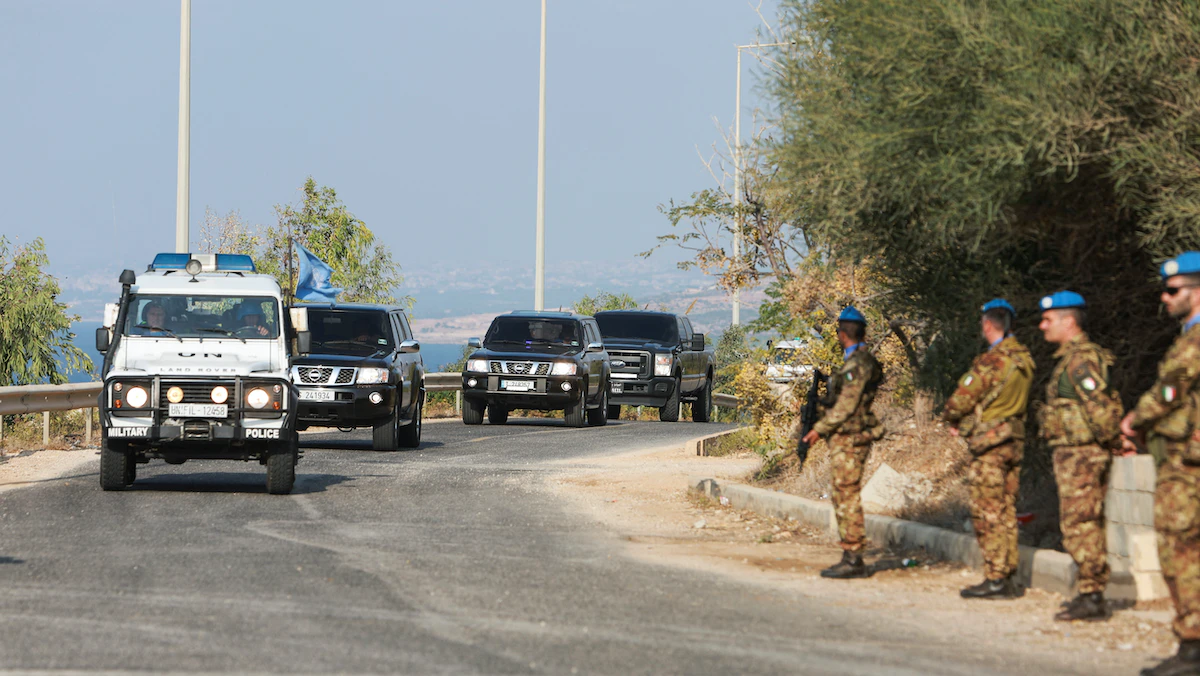 موكب لمسؤولين لبنانيين وأميركيين يتوجه إلى مقر الأمم المتحدة في رأس الناقورة جنوب لبنان لتوقيع اتفاق ترسيم الحدود البحرية مع إسرائيل. 27 أكتوبر 2022. - REUTERS