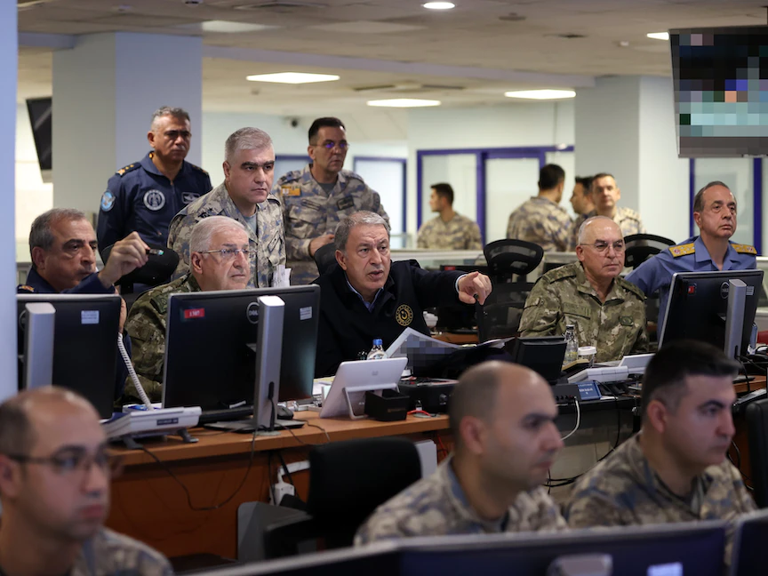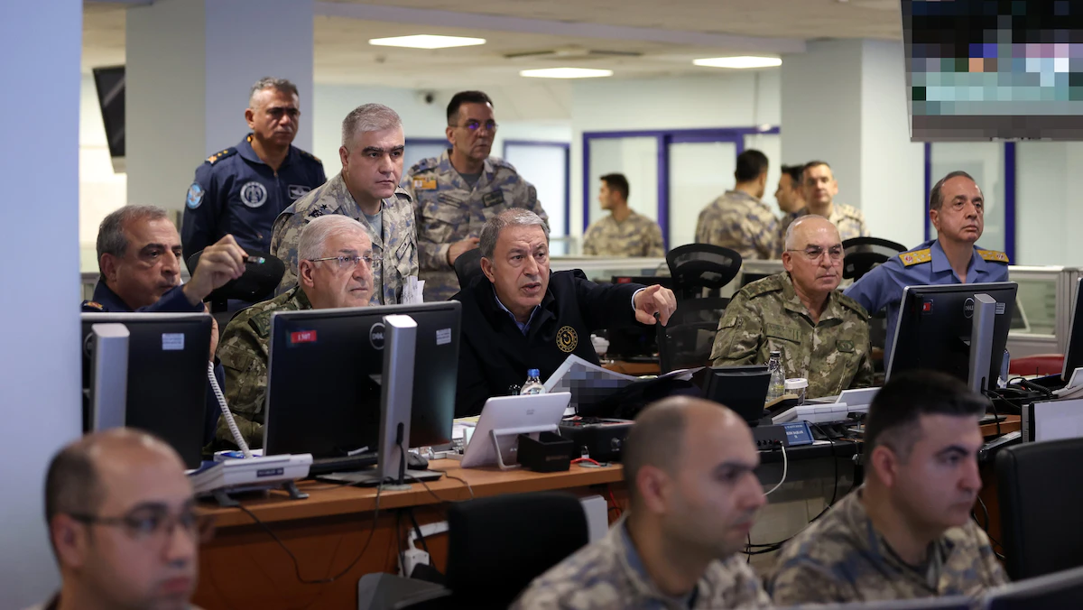 وزير الدفاع التركي خلوصي أكار في مركز قيادة عمليات الجيش مع رئيس أركان الجيش وقادة سلاح الدفاع الجوي، أنقرة، - 20 نوفمبر 2022 - twitter.com/tcsavunma