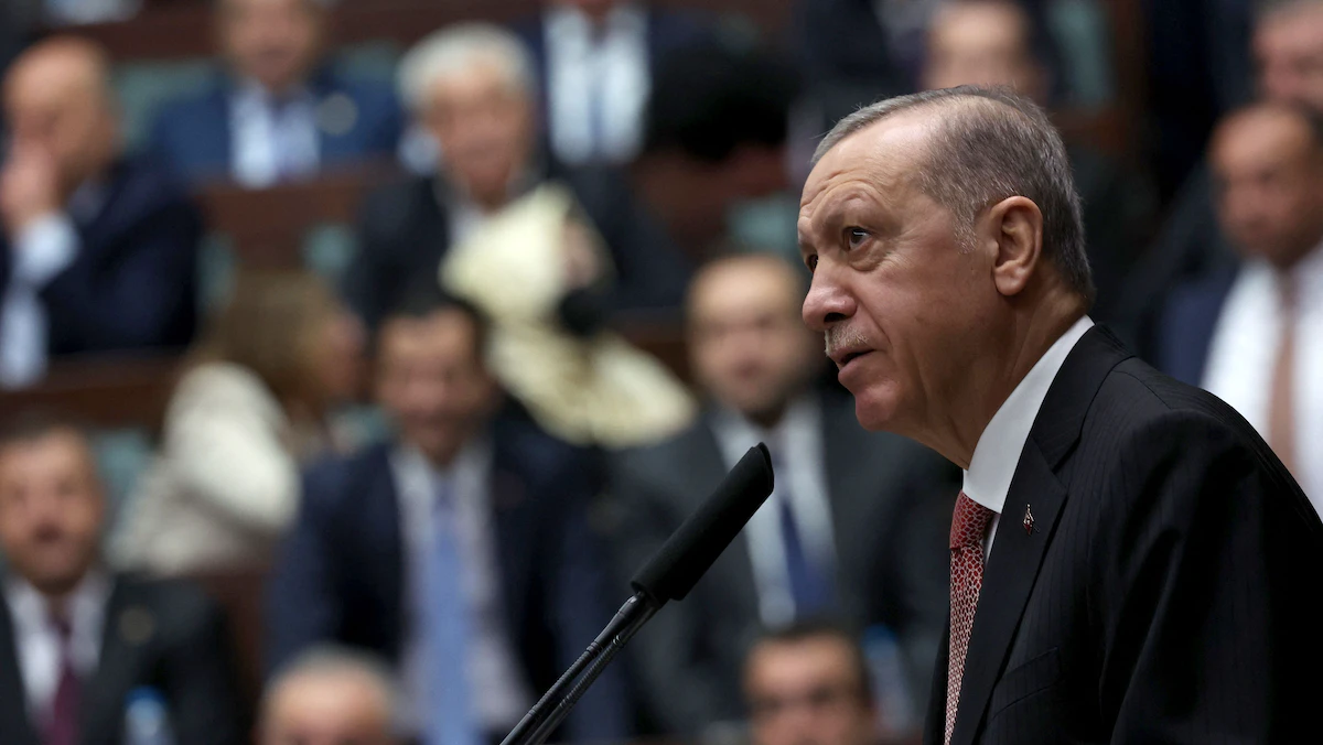 الرئيس التركي رجب طيب أردوغان يلقي كلمة في اجتماع حزبه في الجمعية الوطنية التركية الكبرى في أنقرة- 23 نوفمبر 2022 - AFP