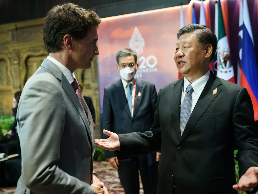 وخلال قمة العشرين في إندونيسيا خلال الشهر الجاري، عقد الرئيس الصيني شي جين بينج ورئيس الوزراء الكندي جاستن ترودو اجتماعاً غير رسمي لمدة 10 دقائق. وانتقد الرئيس الصيني رئيس الوزراء شخصياً بشأن ما تردد عن تسريبات عن اجتماعهما المغلق.
