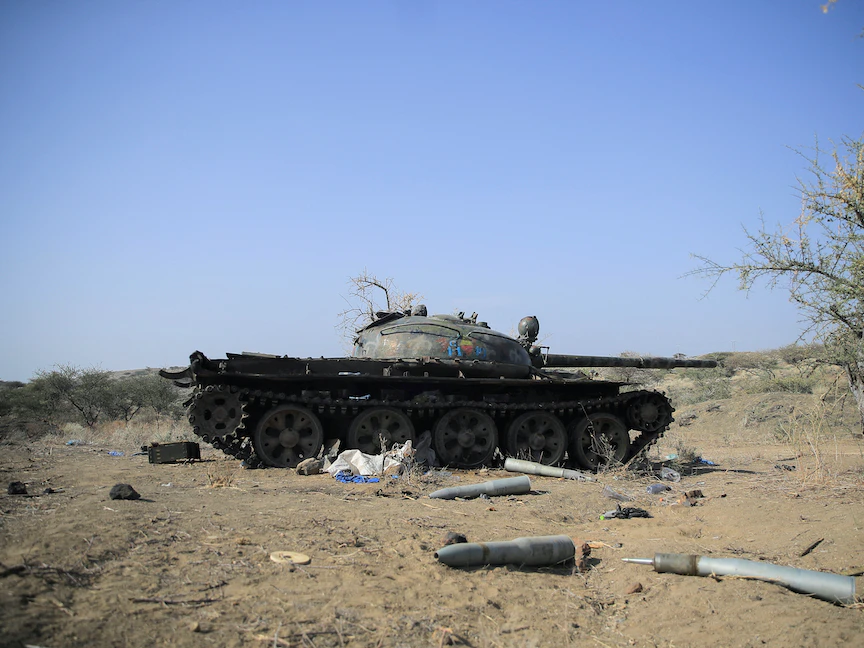 ذخيرة بجوار دبابة دمرت في القتال بين قوات الحكومة الفيدرالية وقوات إقليم تيجراي، عفار، إثبوبيا – 25 فبراير 20222  - REUTERS