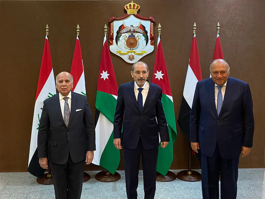 وتهدف آلية التعاون الثلاثي بين الأردن ومصر والعراق إلى زيادة التعاون بين البلدان الثلاث في قطاعات التجارة والصناعة والاقتصاد والنقل البري والربط الكهربائي والطاقة.