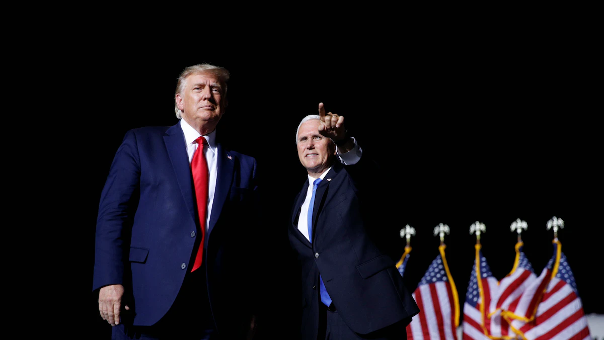 الرئيس الأميركي السابق دونالد ترمب ونائبه مايك بنس خلال تجمّع انتخابي في فيرجينيا، 25 سبتمبر 2020 - REUTERS